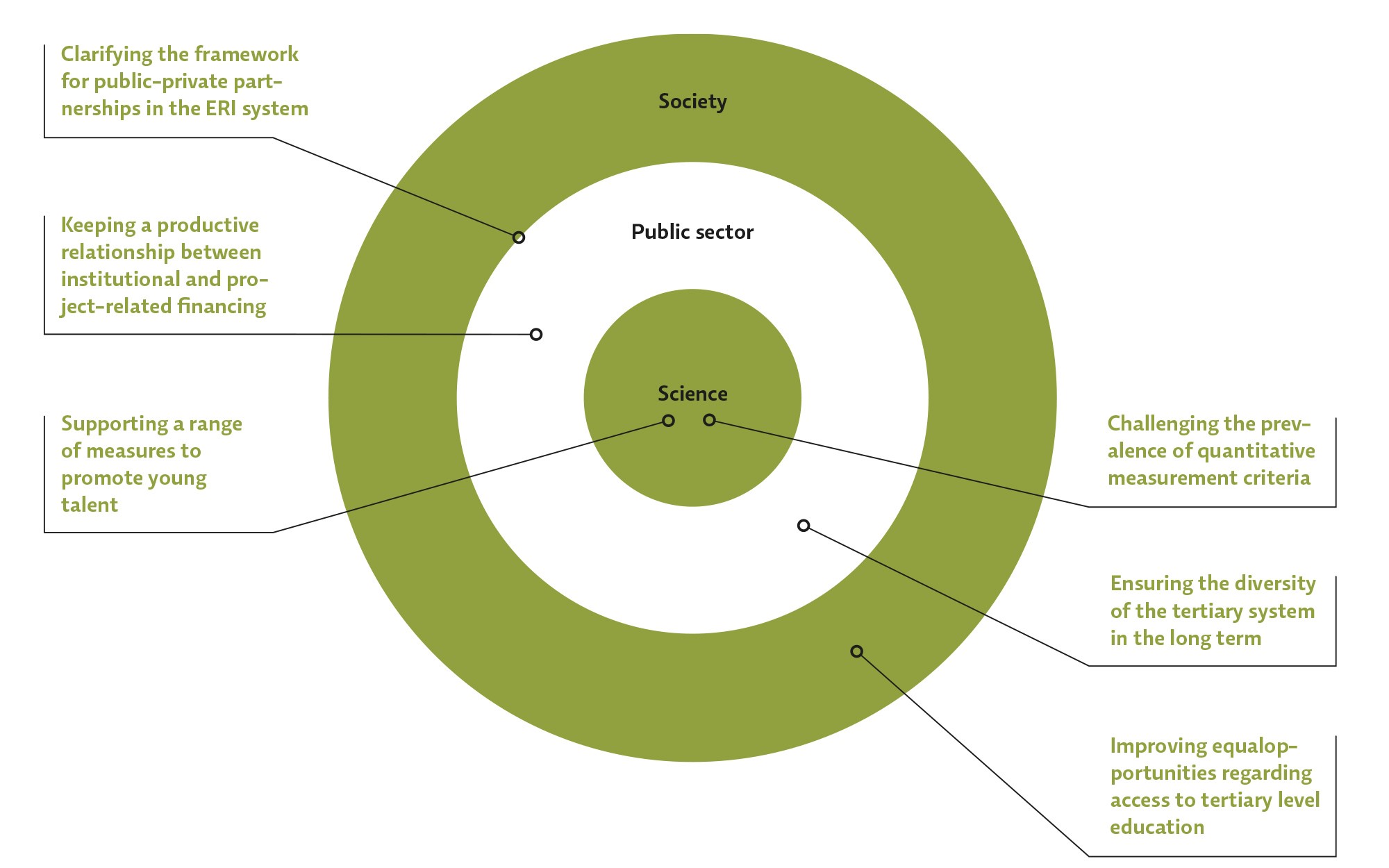In the policy analysis ‘Requirements for a sustainable education and research system’, the SSC has formulated six key points and their underlying principles and prospects for future action, such as improving equal opportunities in admission to higher education institutions or to education in general; maintaining diversity in the different types of higher education institutions; and introducing transparency in the cooperation between the private sector higher education institutions. In this policy analysis, the Council examines the ERI landscape from three perspectives: